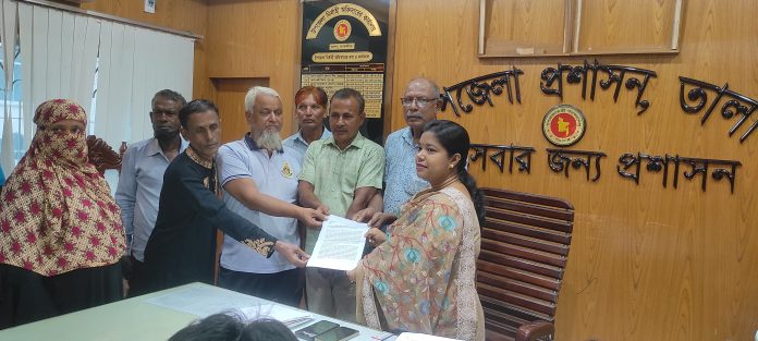 তালায় টিআরএম কার্যক্রমের বকেয়া ক্ষতিপূরন প্রাপ্তি দাবিতে র‍্যালি ও স্মারক লিপি প্রদান।