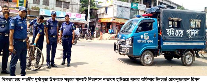 ঝিকরগাছায় শারদীয় দূর্গাপূজা উপলক্ষে সড়কে যানজট নিরাশনে নাভারণ হাইওয়ে পুলিশ