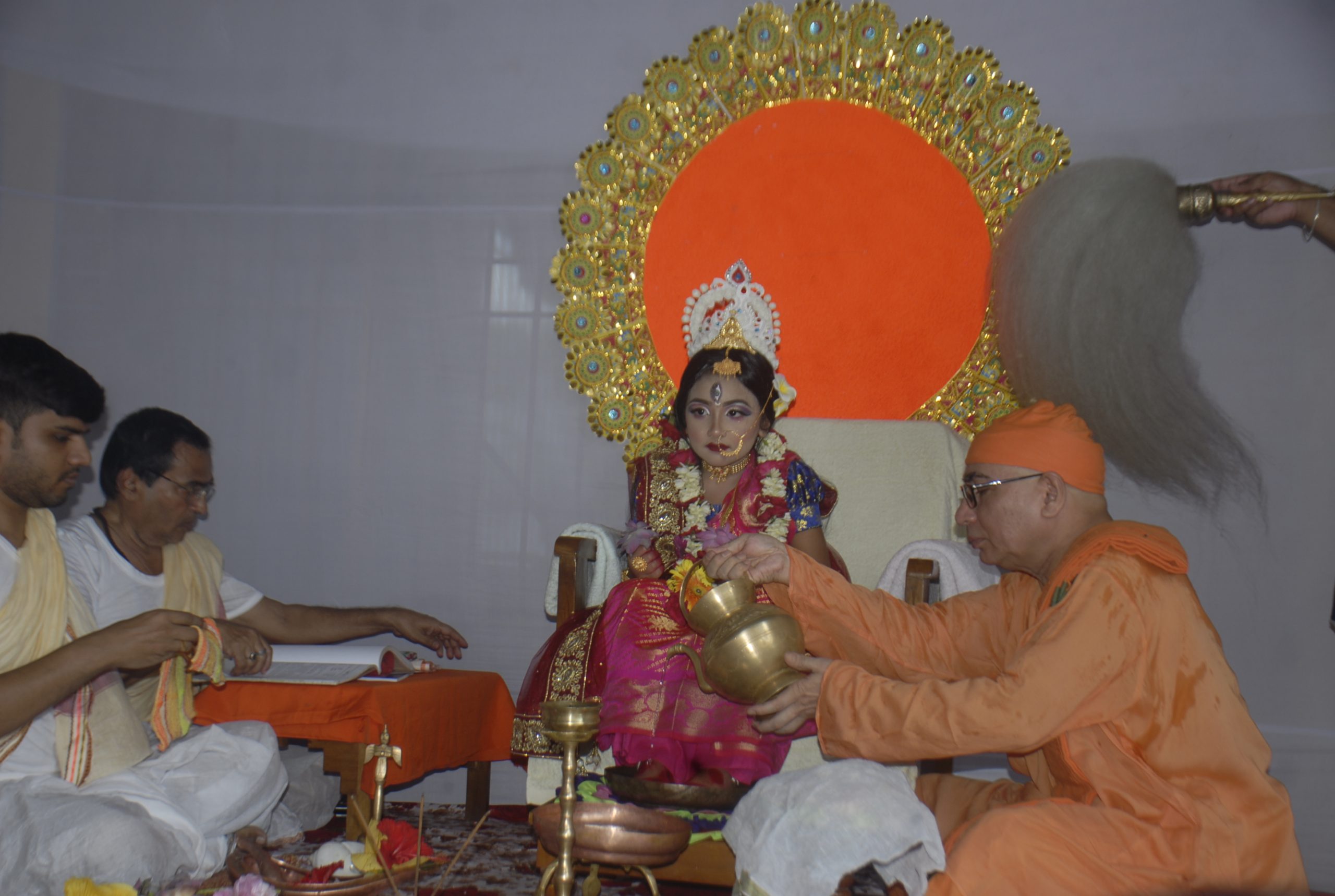 স্টাফ রিপোর্টার : শারদীয় দুর্গোৎসবের মহা অষ্টমীতে বিপুল উৎসাহ ও উদ্দীপনার মধ্য দিয়ে যশোর রামকৃষ্ণ মিশন আশ্রমে কুমারী পূজা অনুষ্ঠিত হয়েছে। বিশুদ্ধ পঞ্জিকা মতে, মঙ্গলবার বেলা ১১টায় আনুষ্ঠানিকভাবে শুরু হয় কুমারী পূজা। এ বছর কুমারী হিসেবে মাগুরা জেলার নারায়ণপুর এলাকার তাপস চক্রবর্তীর কন্যা তম্রাস্বতী চক্রবর্তীকে (৫) মাতৃজ্ঞানে পূজা করেন ভক্তরা। সকাল থেকে ঢল নামে ভক্তদের। কুমারী অন্বেষার মাধ্যমে দেবীকে আরধনা করতে পেরে খুশি আশ্রমে আসা ভক্তরা। যুগাবতার শ্রীরামকৃষ্ণ দেবের মতে, কুমারী হচ্ছে শুদ্ধতার প্রতীক। দেবী দুর্গার আরেক নাম কুমারী। এ পূজার মাধ্যমে স্বয়ং মা দুর্গা মানুষের ভেতরে বিকশিত হন। তাই শঙ্খ, ঘণ্টা আর উলু ধ্বনির মধ্য দিয়ে জাঁকজমকপূর্ণভাবে দুর্গা দেবীকে কুমারী রূপে অর্ঘ্য প্রদান করা হয়। সংশ্লিষ্ট সূত্রে জানা গেছে, খুলনা বিভাগের মধ্যে বাগেরহাট এবং যশোরে এ কুমারী পূজার আয়োজন করা হয়। ফলে যশোরের পার্শ্ববর্তী ও দূরদূরান্তের জেলাগুলো থেকে অনেক ভক্তরা আসেন কুমারী পূজার আরাধনায় অংশগ্রহণ করতে। রামকৃষ্ণ মিশন আশ্রমে সকাল থেকেই কুমারী পূজা দেখার জন্য নানা বয়সের সব ধর্মাবলম্বী নারী-পুরুষের ভিড় জমে। এছাড়া সকালে জেলার ৮ উপজেলার ৭০৮টি মন্দির ও মণ্ডপে মহাঅষ্টমী পূজা অনুষ্ঠিত হয়েছে। বিভিন্ন মণ্ডপে উপোস থেকে ভক্তরা দুর্গা মায়ের চরণে পুষ্পাঞ্জলি দিয়েছেন। পূজা শেষে মিশনের পক্ষ থেকে প্রসাদ বিতরণ করা হয়। সরেজমিন ঘুরে দেখা গেছে, সকাল থেকেই বিভিন্ন বয়সের নারী, পুরুষ ও শিশুসহ ভক্ত দর্শনার্থীরা নতুন পোশাক পড়ে পূজা মণ্ডপে ভিড় করেন। এ সময় পুরোহিতের মন্ত্রোচ্চারণ ও ঢাকের বাজনা এবং শঙ্খধ্বনিতে পুরো এলাকায় উৎসবের আমেজ ছড়িয়ে পড়ে। নড়াইল থেকে আসা ইন্দ্রজিৎ হালদার বলেন, ‘কুমারী দেবীর আরাধনা করতে তারা কয়েকজন ৭০ কিলোমিটার দূর থেকে যশোরে এসেছেন। বিশ্ব জগতের মঙ্গল কামনা করে প্রার্থনাও করেছেন। অলকা রাণী নামে আরেকজন বলেন, সপরিবারে প্রতিবছর যশোরে কুমারী পূজা করতে আসি। এ বছরও এসেছি। যেহেতু অনেক জেলা থেকে প্রতিবছর ভক্তরা আসেন, সেহেতু আত্মীয়স্বজনদের সঙ্গে দেখা হয়। অনেক ভালো লাগছে।’ যশোর রামকৃষ্ণ মিশন আশ্রম ও মিশনের অধ্যক্ষ স্বামী জ্ঞানপ্রকাশানন্দ মহারাজ বলেন, ‘প্রতিবারের মত এবারও আমরা কুমারী পূজার আয়োজন করেছি। হিন্দু ধর্মীয় মতে, বয়স ভেদে কুমারীর নাম ভিন্ন হয়। এবার ৫ বছর বয়সী তম্রাস্বতী চক্রবর্তীর পূজিত হন। তিনি আরও বলেন, ‘শাস্ত্রমতে এই বয়সে কুমারী পূজিতা হলে শুভশক্তির বিকাশ ও অশুভ শক্তির বিন্যাস ঘটে। এতে সমাজে অশান্তি দূর হয়ে শান্তিপূর্ণ অবস্থা বজায় থাকে।’জানা যায়, এ বছর যশোর জেলায় ৭০৮টি মন্দির ও মণ্ডপে শারদ