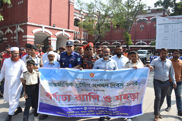 নিজস্ব প্রতিবেদক : সমন্বিত উদ্যোগ, প্রতিরোধ করি দুর্যোগ প্রতিপাদ্যে যশোরে দুর্যোগ প্রশমন দিবস উদযাপন করা হয়েছে। উপলক্ষে জেলা প্রশাসনের উদ্যোগে কালেক্টরেট চত্বর থেকে র্যালি বের করা হয়। প্রধান অতিথি হিসেবে র্যালির উদ্বোধন করে জেলা প্রশাসক আজাহারুল ইসলাম। জেলা ত্রাণ ও পুনর্বাসন কর্মকর্তা আব্দুল কাদেরে সভাপতিত্বে উপস্থিত ছিলেন অতিরিক্ত জেলা প্রশাসক (সার্বিক) সুজন সরকার, অতিরিক্ত জেলা প্রশাসক (রাজস্ব) কমলেশ মজুমদার, সদর উপজেলা নির্বাহী কর্মকর্তা শারমিন আক্তার, কোতয়ালী মডেল থানার ভারপ্রাপ্ত কর্মকর্তা আবুল হাসনাথ খান, সদর উপজেলা প্রকল্প বাস্তবায়ন কর্মকর্তা ইয়ারুল হক, কালেক্টরেট স্কুল এন্ড কলেজের অধ্যক্ষ মোদাচ্ছের হোসেন প্রমুখ। র্যালি শেষে ফায়ার সার্ভিসের উদ্যোগে দুর্যোগ মোকাবেলার মহড়া প্রদর্শন করা হয়।