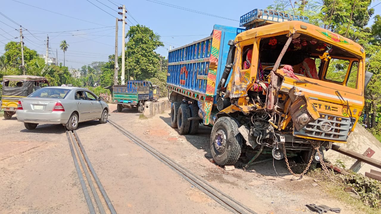 যশোরে ট্রাক রেলক্রসিংএ ট্রাক দুর্ঘটনায় চালক আহত