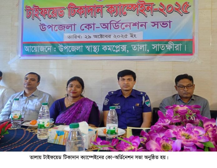 তালা (সাতক্ষীরা) প্রতিনিধি : সাতক্ষীরার তালায় টাইফয়েড টিকাদান ক্যাম্পেইনের উপজেলা কো অর্ডিনেশন সভা অনুষ্ঠিত হয়েছে।