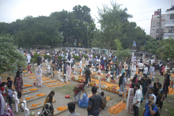 নিজস্ব প্রতিবেদক: যশোরে খ্রিস্ট ধর্মের বাৎসরিক কবর আশীর্বাদ দিবস পালন করা হয়েছে। গতকাল রোববার বিকেলে শহরের কারবালা মোড়ে অবস্থিত খ্রিস্টান কবরস্থানে প্রার্থনার মাধ্যমে দিবসটি পালন করা হয়। যশোরের খ্রিস্ট ধর্মের অনুসারিরা জানান, সারা বিশ্বের খ্রিস্টানেরা এদিন মৃত স্বজনের কবরে ফুল, মোমবাতি, ধূপ দিয়ে শ্রদ্ধা ও মৃতদের আত্মার শান্তি কামনায় প্রার্থনা করেন। সে রীতি অনুসারে এ দিন বিকেলে শহরের বিভিন্ন এলাকা থেকে খ্রিস্টান কবরস্থানে সমাহিত স্বজনদের জন্য কবরস্থানে সমবেত হয় বিভিন্ন বয়সের নারী-পুরুষ-শিশু-বৃদ্ধরা। প্রার্থনায় আসা প্রশান্ত বিশ্বাস ও অ্যাঞ্জেলা গমেজ বলেন, যারা মারা গেছেন তাদের আত্মার শাস্তি কামনায় আমরা সকলে এ কবরস্থানে সম্মিলিত হয়েছি। এ প্রার্থনায় গানের মাধ্যমে ইশ্বরের কাছে সকলের ক্ষমার আবেদন জানানো হয়েছে যেনো সকল আত্মাকে তিনি আপন মনে করে ক্ষমা করে দেন। আগস্টিনা সরকার জানান, আমাদের কাছের মানুষ যারা মারা গেছে বিশেষ এ দিনে ঈশ্বরের কাছে তাদের মঙ্গল কামনায় প্রার্থনা করি। তারা যেন শান্তিতে থাকে। গতকালের এই বিশেষ দিনে বিশেষ প্রার্থনা পরিচালনা করেন যশোর ক্যাথলিক চার্চের পুরোহিত ফাদার নিকোলাস মন্ডল। এ সময় তিনি বলেন, যারা মারা গেছেন তাদের জন্যে ক্ষমা প্রার্থনা এবং যারা জীবিত আছে তাদের মঙ্গল কামনায় বিশেষ এ দিনটি পালন করা হয়।