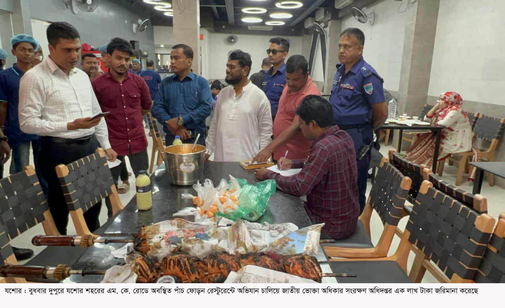 স্টাফ রিপোর্টার : ‘বাসি গ্রিল ফ্রিজে সংরক্ষণ করে বিক্রি করা হয় পরদিন, কাসুন্দি, সস, মেওনেজের কোনো মেয়াদ নেই’ এসব অভিযোগের ভিত্তিতে যশোর শহরের ‘পাঁচ ফোড়ন’ রেস্টুরেন্টকে এক লাখ টাকা জরিমানা করা হয়েছে। বুধবার দুপুরে যশোর শহরের এম. কে. রোডে অবস্থিত এই রেস্টুরেন্টে অভিযান চালিয়েছে জাতীয় ভোক্তা অধিকার সংরক্ষণ অধিদপ্তর। অভিযানে নেতৃত্ব দেন যশোর জেলা কার্যালয়ের সহকারী পরিচালক মো. সেলিমুজ্জামান। অভিযানকালে ফ্রিজে বাসি গ্রিল সংরক্ষণ, মেয়াদহীন কাসুন্দি, সস ও মেওনেজ রাখার অভিযোগে প্রতিষ্ঠানটির মালিকের কাছ থেকে এক লাখ টাকা জরিমানা আদায় করা হয়। জাতীয় ভোক্তা অধিকার সংরক্ষণ অধিদপ্তর যশোরের সহকারী পরিচালক মো. সেলিমুজ্জামান জানান, তাদের কাছে অভিযোগ আসে যে ‘পাঁচ ফোড়ন’ রেস্টুরেন্টে নিয়মিত বাসি খাবার পুনরায় রান্না করে বিক্রি করা হয়। বিশেষ করে গ্রিলের জন্য ব্যবহৃত মুরগির মাংস সংরক্ষণ করে পরদিন বিক্রি করা হয়। তিনি বলেন, অভিযানকালে দেখা যায়, নোংরা ফ্রিজে গ্রিলের সঙ্গে কাঁচা মুরগির মাংস রাখা হয়েছে। সেই মাংস মোড়ানো ছিল পত্রিকার কাগজে, যার কালি মাংসে লেগে ছিল। যা স্বাস্থ্যের জন্য অত্যন্ত ঝুঁকিপূর্ণ এবং ক্যান্সারের কারণ হতে পারে। তিনি আরও জানান, রেস্টুরেন্টে নানা ধরনের অসঙ্গতি পাওয়া গেছে। পরে নষ্ট খাবারগুলো ধ্বংস করা হয় এবং প্রতিষ্ঠান মালিকের কাছ থেকে এক লাখ টাকা জরিমানা আদায় করা হয়। অভিযানে সদর উপজেলা স্যানিটারি ইন্সপেক্টর মহিবুর রহমান, ক্যাব এর প্রতিনিধি ও পুলিশ সদস্যরা উপস্থিত ছিলেন।