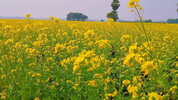 সরিষার হলুদ ফুলে ছেয়ে গেছে, শালিখা’র বিস্তীর্ণ ফসলের মাঠ