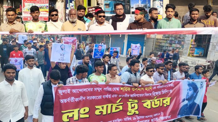 শরিফ ওসমান হাদিকে হত্যার প্রতিবাদে বেনাপোলে বিক্ষোভ মিছিল ও লং মার্চ টু বর্ডার