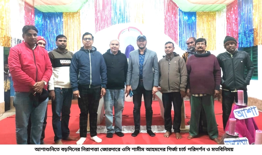 এম এম সাহেব আলী,আশাশুনি (সাতক্ষীরা ) থেকে: আসন্ন শুভ বড়দিন ও থার্টি ফার্স্ট নাইট উদযাপন উপলক্ষে আইন-শৃঙ্খলা ও সার্বিক নিরাপত্তায় আশাশুনি থানার অফিসার ইনচার্জ শামীম আহমদ খন বিভিন্ন গির্জা পরিদর্শন ও মতবিনিময় সভা করেছেন।