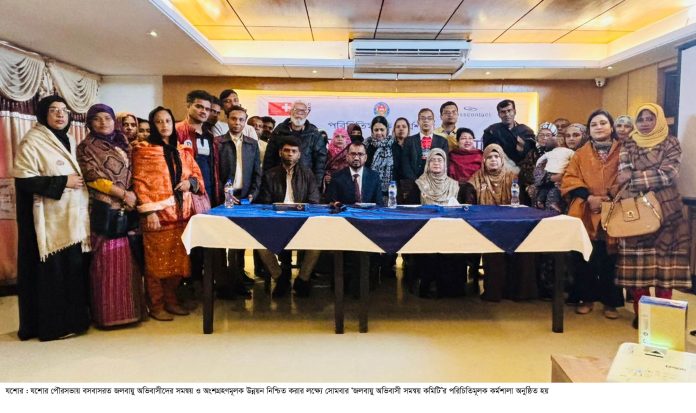 স্টাফ রিপোর্টার : যশোর পৌরসভায় বসবাসরত জলবায়ু অভিবাসীদের সমন্বয় ও অংশগ্রহণমূলক উন্নয়ন নিশ্চিত করার লক্ষ্যে ‘জলবায়ু অভিবাসী সমন্বয় কমিটি’র পরিচিতিমূলক কর্মশালা অনুষ্ঠিত হয়েছে। সুইসকন্ট্যাক্ট বাংলাদেশের ‘সম্প্রীতি’ প্রকল্পের আওতায় এবং যশোর পৌরসভার সমন্বয়ে সোমবার যশোরের একটি হোটেলে এ কর্মশালা অনুষ্ঠিত হয়। অনুষ্ঠানে প্রধান অতিথি ছিরেন যশোর পৌরসভার প্রধান নির্বাহী কর্মকর্তা সৈয়দ মোরাদ আলী। তিনি বলেন, ‘এই কমিটিতে যারা যুক্ত আছেন, তারা তাদের কার্যক্রমের মাধ্যমে নীতিনির্ধারণ প্রক্রিয়াতেও অংশগ্রহণ করছেন। সুতরাং কমিটিকে সচল রাখা মানে যশোর পৌরসভার সার্বিক উন্নয়নে সক্রিয়ভাবে অংশগ্রহণ করা, যা আরও ভালো ও অন্তর্ভুক্তিমূলক নাগরিক সেবা প্রদানে সহায়তা করবে।’ এই কর্মশালার মাধ্যমে যশোর পৌরসভার ৫, ৬ ও ৭ নম্বর ওয়ার্ডে বসবাসরত জলবায়ু অভিবাসীদের মধ্য থেকে সকল পেশার প্রতিনিধিত্ব নিশ্চিত করে ১১ সদস্যবিশিষ্ট তিনটি সমন্বয় কমিটি গঠন করা হয়। গঠিত কমিটিগুলোতে জলবায়ু অভিবাসীদের পাশাপাশি শিক্ষক প্রতিনিধি, নারী উদ্যোক্তা, ছাত্র/ছাত্রী প্রতিনিধি, সাংবাদিক এবং সুশীল সমাজের প্রতিনিধিরা অন্তর্ভুক্ত রয়েছেন। কর্মশালায় সংশি¬ষ্ট ওয়ার্ডসমূহে বসবাসরত জলবায়ু অভিবাসী ও অন্যান্য দরিদ্র জনগোষ্ঠীর নানাবিধ সামাজিক, অর্থনৈতিক ও সেবাসংক্রান্ত সমস্যাসমূহ চিহ্নিত করা এবং সেগুলো সমাধানে করণীয় নিয়ে বিস্তারিত আলোচনা হয়। বিশেষভাবে মাসিক সভার মাধ্যমে এসব সমস্যা কীভাবে নিয়মিতভাবে আলোচনা করে পৌরসভা ও জেলা প্রশাসনের সঙ্গে সমন্বয়ের মাধ্যমে কার্যকর সমাধানের উদ্যোগ নেওয়া যায় এবং বিভিন্ন ফোরামে উপস্থাপনের মাধ্যমে সেবাপ্রাপ্তি নিশ্চিত করা যায়-সে বিষয়ে দিকনির্দেশনা প্রদান করা হয়। অনুষ্ঠানে গঠিত কমিটির সদস্যবৃন্দের পাশাপাশি যশোর পৌরসভা থেকে প্রধান নির্বাহী কর্মকর্তা, পৌর নির্বাহী কর্মকর্তা, সমাজ উন্নয়ন কর্মকর্তা ও শহর পরিকল্পনাবিদ উপস্থিত ছিলেন। এছাড়াও সুইসকন্ট্যাক্ট বাংলাদেশ-এর ‘সম্প্রীতি’ প্রকল্পের প্রতিনিধিরা কর্মশালায় অংশগ্রহণ করেন।