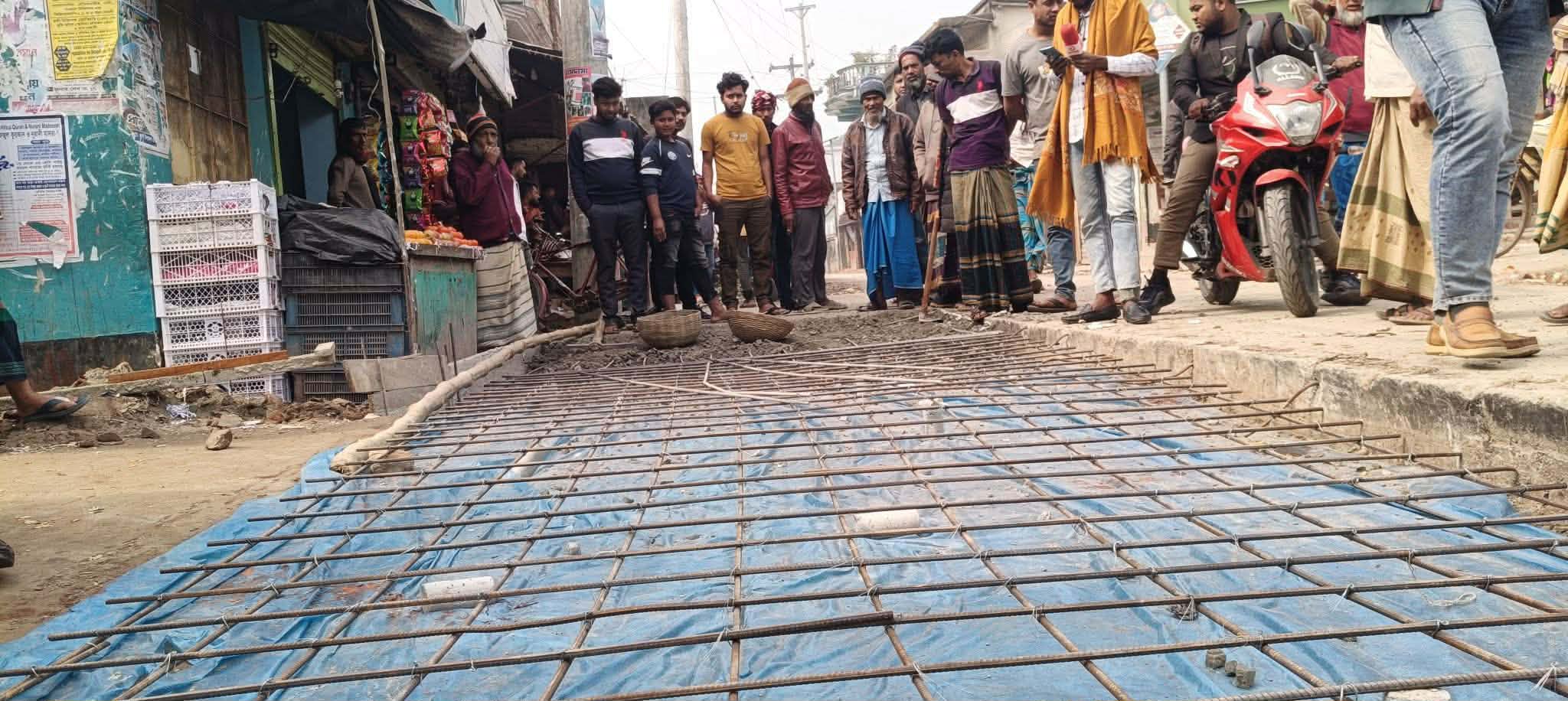 স্থানীয় বাসিন্দা নজরুল ইসলাম, আশরাফুল ইসলামসহ একাধিক ব্যক্তি জানান, রাস্তা নির্মাণে নিম্নমানের রড, পাথরের খোয়া ও ইট ব্যবহার করা হয়েছে। পাশাপাশি নির্ধারিত অনুপাতে সিমেন্ট ব্যবহার না করায় নির্মাণকাজের স্থায়ীত্ব নিয়ে শঙ্কা দেখা দেয়। বিষয়টি স্থানীয়দের নজরে আসলে তারা একত্রিত হয়ে কাজ বন্ধ করে দেন এবং প্রশাসনকে অবহিত করেন।