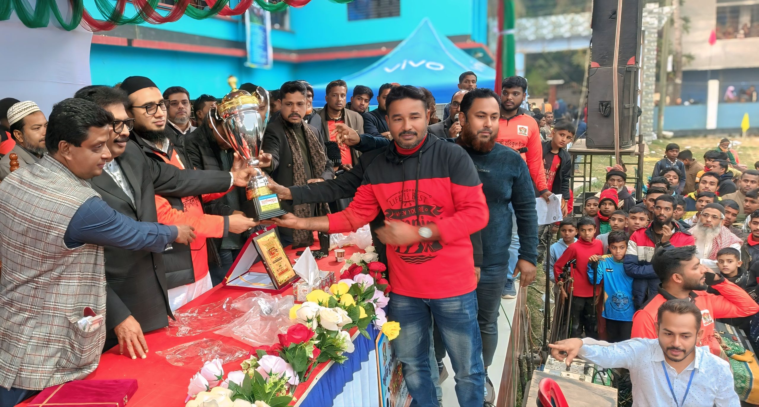 অভয়নগর (যশোর) প্রতিনিধি : বিএনপির জাতীয় স্থায়ী কমিটির সদস্য ও সাবেক মন্ত্রী মরহুম তরিকুল ইসলাম স্মরণে যশোরের অভয়নগরে ‘তরিকুল ইসলাম স্মৃতি ৮ দলীয় ফুটবল টুর্নামেন্ট ২০২৫’ এর ফাইনাল খেলা অনুষ্ঠিত হয়েছে। ধোপাদী ফুটবল একাডেমির আয়োজনে শুক্রবার (২৬ ডিসেম্বর) বিকালে ধোপাদী মাধ্যমিক বিদ্যালয় মাঠে ফাইনাল খেলাটি অনুষ্ঠিত হয়। এতে নড়াইলের চাঁচড়া ফুটবল একাদশ টাইব্রেকারে ৩-২ গোলে শার্শা ফুটবল একাডেমিকে হারিয়ে চ্যাম্পিয়ন হওয়ার গৌরব অর্জন করে।