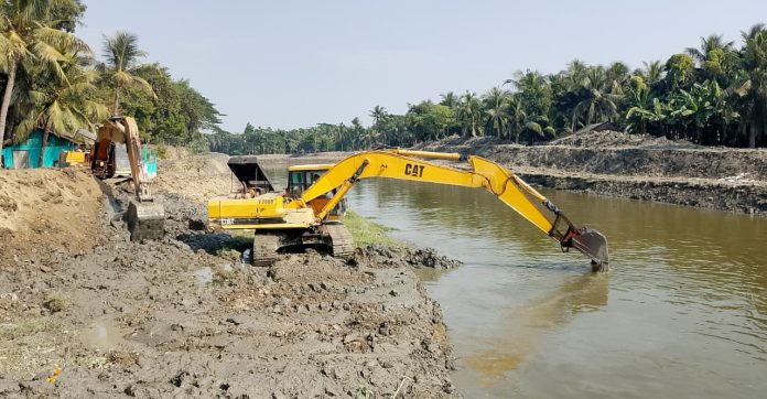 নদী পুনঃখনন প্রকল্পের কাজ। প্রকল্পটি বাংলাদেশ সেনাবাহিনীর তত্ত্বাবধানে নদী
