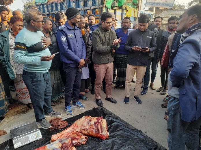 শুক্রবার (৯ ডিসেম্বর) বিকেল ৪টার দিকে উপজেলা সহকারী কমিশনার (ভূমি) নাবিদ হোসেন পরিচালিত অভিযানে এই দণ্ড প্রদান করেন। দণ্ডপ্রাপ্ত মাংস বিক্রেতা হলেন নওয়াপাড়া গ্রামের আব্দুল সামাদের ছেলে আফেজ আলী (৫০)।