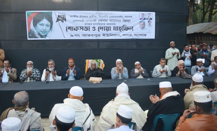 স্টাফ রিপোর্টার ।। জাতীয় ঐক্যের প্রতীক, বিএনপি চেয়ারপার্সন, সাবেক তিন বারের সফল প্রধানমন্ত্রী, আপোষহীন দেশনেত্রী বেগম খালেদা জিয়ার রুহের মাগফেরাত কামনায় যশোর সদর উপজেলার আরবপুর ইউনিয়ন বিএনপির আয়োজনে শোক ও দোয়া মাহফিল অনুষ্ঠিত হয়েছে।