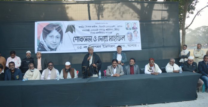 জাতীয় ঐক্যের প্রতীক, বিএনপি চেয়ারপার্সন, সাবেক তিন বারের সফল প্রধানমন্ত্রী, আপোষহীন দেশনেত্রী বেগম খালেদা জিয়ার রুহের মাগফেরাত কামনায় যশোর সদর উপজেলার উপশহর ইউনিয়ন বিএনপির আয়োজিত শোক ও দোয়া মাহফিলে প্রধান অতিথির বক্তৃতায় তিনি এ কথা বলেন। মঙ্গলবার উপশহর কেন্দ্রীয় ঈদগাহ মাঠে অনুষ্ঠিত শোক সভায় অনিন্দ্য ইসলাম অমিত আরও বলেন, বেগম খালেদা জিয়া বারংবার দেশের স্বাধীনতা, সার্বভৌমত্ব এবং গণতন্ত্রের প্রশ্নে আপোষহীনতা দেখিয়েছেন। সাধারন গৃহবধু থেকে পিচঢালাও রাজপথে নেমে এসেছিলেন স্বৈরাচার বিরোধী আন্দোলনে নেতৃত্ব দিয়েছেন। সেদিন বেগম খালেদা জিয়া ছিলেন, হ্যামিলনের বাঁশি ওয়ালা। তার ডাকে সেদিন দেশের সমগ্র ছাত্র-জনতা রাজপথে নেমে এসেছে স্বৈরাচারের পতন নিশ্চিত করেছিল। নয় বছরের সংগ্রামের মাধ্যমে তিনি মানুষের জন্য গণতন্ত্র ফিরিয়ে এনেছিলেন। ৮৬ এবং ৮৮ নির্বাচনের তিনি আপোষ করেননি। সে দিন থেকে জনগণ তাকে আপোষীন নেত্রী উপাধি দেয়। তার আপোষহীতার জয় জয়কার দেখেছি ৯১ সালের জাতীয় নির্বাচনে। সেই নির্বাচনে দেশের মানুষ তাকে হৃদয় নিংড়ানো ভালোবাসার দৃষ্টান্ত দেখিয়েছিল ধানের প্রতি সমর্থন ব্যক্ত করে প্রথম নারী প্রধানমন্ত্রী হিসেবে অভিষিক্ত করে। তিনি মানুষের ভালোবাসার প্রতিদান দিয়েছিলেন তার কর্মের মাধ্যমে। এই যশোরের প্রতি টি শিক্ষা প্রতিষ্ঠান, সরকারি প্রতিষ্ঠান, রাস্তা, ঘাট, মসজিদ, মন্দিরের উন্নয়নের তার হাতের ছোঁয়া রয়েছে।