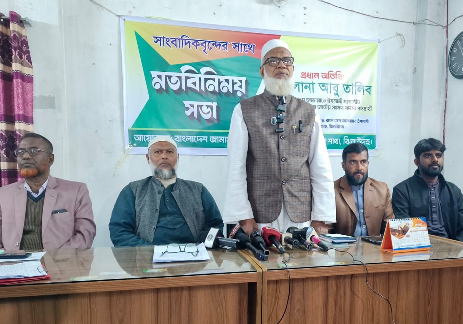জামায়াতে ইসলামীর মনোনিত প্রার্থী মাওলানা আবু তালিব বলেন, সাংবাদিকরা জাতির বিবেক। বাংলাদেশের ইতিহাসে ৫৪ বছর পার হয়েছে। এ সময়ে মানুষের ভোটাধিকার হরণ করা হয়েছে, মানুষ বিভিন্ন ভাবে বঞ্চিত। ভোট আসলে মানুষের মধ্যে আতঙ্ক তৈরি করা হয়, ভয় দেখানো হয়। ভোট শেষ হলে যারা পরাজিত হয় তাদের বাড়িঘর ভাঙচুর করা হয়। এবারের নির্বাচন একটু ভিন্ন আঙ্গীকে দেখা হচ্ছে। নির্বাচনে সবার জন্য লেভেল প্লেয়িং ফিল্ড তৈরি হবে। স্বাধীনভাবে সবাই তার মতামত প্রয়োগ করতে পারবে। ভোটের সুন্দর পরিবেশ হবে এটা আমাদের প্রত্যাশা। এ সুন্দর পরিবেশের জন্য সাংবাদিকদের ভূমিকা রয়েছে। সেই প্রত্যাশা পুরনের জন্য সাংবাদিকদের ভূমিকা অপরিসিম। এচন্য আপনাদের প্রয়োজনীয় কর্মকান্ড অব্যহত থাকবে আশা রাখছি। আমরা চাই একটি সুশৃঙ্খল আনন্দ ঘন পরিবেশে সুষ্ঠ্য উৎসবমুখর ভোট অনুষ্ঠিত হোক। এমন পরিবেশে জনগণ যাকে চাইবে তিনিই নির্বাচিত হয়ে আসবেন।