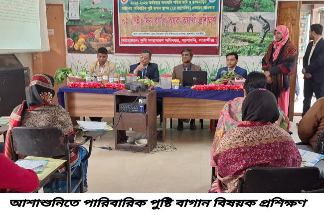 উপজেলা কৃষি সম্প্রসারণ অধিদপ্তর আশাশুনির আয়োজনে অনাবাদি পতিত জমি ও বসত বাড়ির আঙ্গিনায় পারিবারিক পুষ্টি বাগান স্থাপন (২য় সংশোধিত) প্রকল্পের আওতায় অনুষ্ঠানে ৩০ জন কৃষক-কৃষাণী অংশ গ্রহন করেন। উপজেলা কৃষি অফিসার কৃষিবিদ শুভ্রাংশু শেখর দাশের সভাপতিত্বে অনুষ্ঠানে প্রধান অতিথি ছিলেন, খুলনা অঞ্চল, খুলনার অতিঃ পরিচালক মোঃ রফিকুল ইসলাম। বিশেষ অতিথি ছিলেন, কৃষি সম্প্রসারণ অধিদপ্তর খামার বাড়ি সাতক্ষীরার উপ পরিচালক মোঃ সাইফুল ইসলাম।