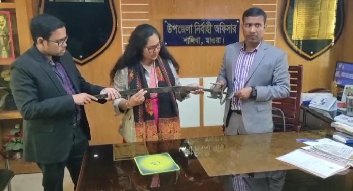 শালিখা উপজেলা নির্বাহী কর্মকর্তা (ইউএনও) মো: বনি আমিন বলেন,চিত্রা নদী থেকে একটি পুরাতন আমলের তরবারি উদ্ধার করা হয়েছে। আজ বুধবার ২১ জানুয়ারি তরবারিটি. প্রত্নতত্ত্ব অধিদপ্তরের মোসাঃ আইরীন পারভীন ফিল্ড অফিসার,শাহিন মিয়া সহকারী কাস্টোডিয়ান রবীন্দ্র স্মৃতি জাদুঘর, মোঃ রায়হান