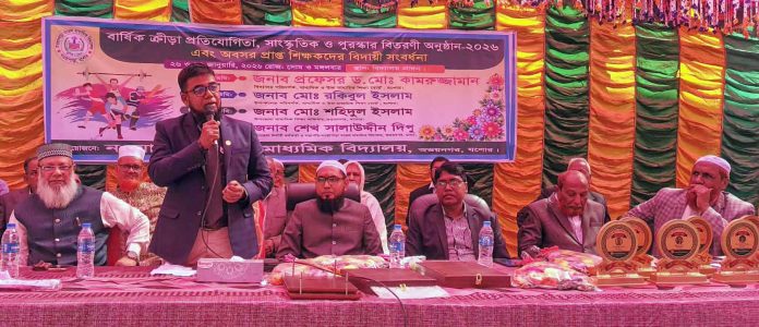 স্টাফ রিপোর্টার : যশোরের অভয়নগরে বার্ষিক ক্রীড়া প্রতিযোগিতা, সাংস্কৃতিক ও পুরস্কার বিতরণী অনুষ্ঠান ২০২৬ এবং অবসরপ্রাপ্ত শিক্ষকদের বিদায়ী সংবর্ধনা অনুষ্ঠিত হয়েছে। নওয়াপাড়া মডেল মাধ্যমিক বিদ্যালয়ের আয়োজনে মঙ্গলবার (২৭ জানুয়ারি) দুপুরে বিদ্যালয়ের প্রাঙ্গণে পুরস্কার বিতরণী ও বিদায়ী শিক্ষকদের সংবর্ধনা অনুষ্ঠিত হয়।