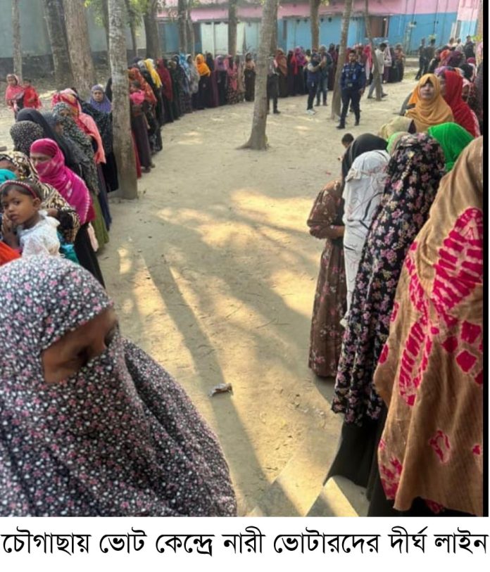 বিদ্যালয় কেন্দ্রে সকাল ১০ টায় যেয়ে দেখা যায় নারী ভোটারদের সরব