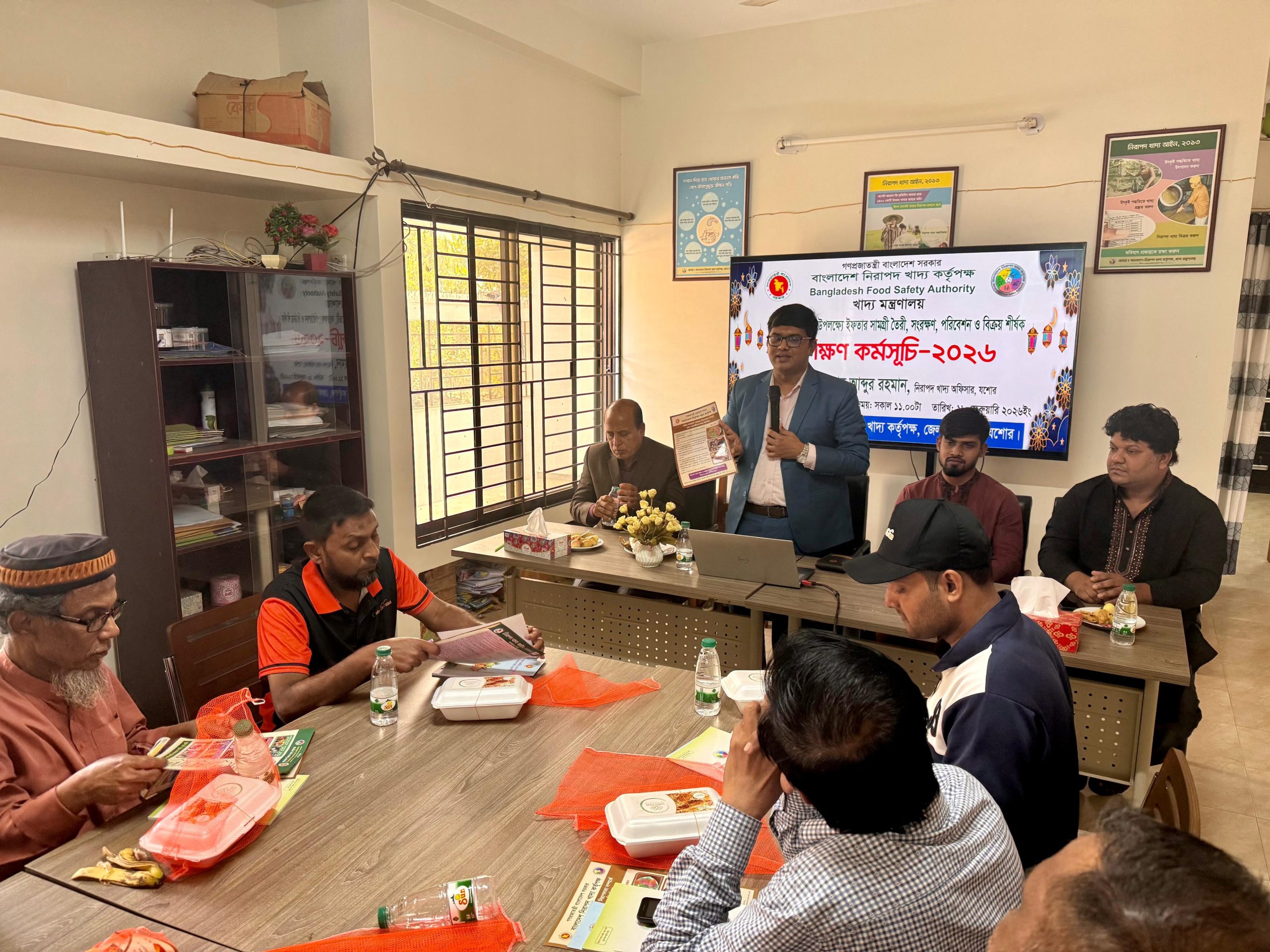 বুধবার দিনব্যাপি বাংলাদেশ নিরাপদ খাদ্য কর্তৃপক্ষ যশোর অফিসের সেমিনার হলে খাদ্যকর্মীদের জন্য নিরাপদ ও স্বাস্থ্যসম্মত ইফতার প্রস্তুত প্রশিক্ষণে আলোচনা করেন যশোর নিরাপদ খাদ্য অফিসার আব্দুর রহমান।