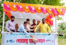 ডুুমুরিয়ায় জলাশয়ে পোনা মাছ অবমুক্তকরণ