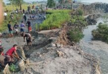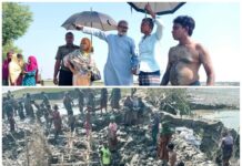 পাইকগাছায় বাইশারাবাদস্থ আশ্রায়ন প্রকল্পের ভাঙ্গনকৃত সুরক্ষা বেঁড়িবাঁধের চলমান নির্মাণ কাজে তদারকি