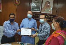 জাতীয় শুদ্ধাচার পুরস্কারের সনদপত্র প্রদান করেন এলজিআরডি প্রতিমন্ত্রী স্বপন ভট্টাচার্য্য এমপি