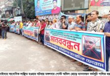ঝিনাইদহে সাংবাদিক লাঞ্ছিত হওয়ার ঘটনায় মানববন্ধন ও বিক্ষোভ মিছিল