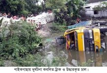 পাইকগাছায় চাল ভর্তি ট্রাক পুকুরে