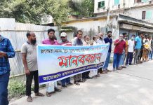 সাতক্ষীরা পৌরসভার জলাবদ্ধতা দূরীকরণের দাবীতে মানববন্ধন
