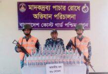 শ্যামনগরে ৩৬ বোতল ভারতীয় মদ জব্দ করেছে কোস্টগার্ড