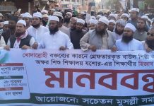 বাউল আবুল হোসেনের দৃষ্টান্তমূলক শাস্তির দাবিতে যশোরে মানববন্দন ও বিক্ষোভ মিছিল