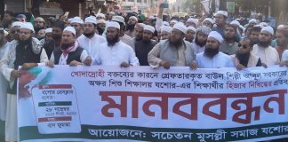 বাউল আবুল হোসেনের দৃষ্টান্তমূলক শাস্তির দাবিতে যশোরে মানববন্দন ও বিক্ষোভ মিছিল